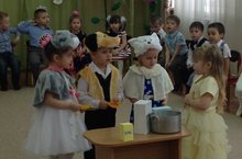 Сегодня дети старше-подготовительной группы приготовили концерт для своих мам и бабушек. А помогали им в этом Клоуны Пузырик и Кнопочка.