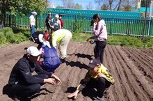 Мәктәп бакчасында эш гөрли. Укучылар, укытучылар, мәктәп хезмәткәрләре бакчага яшелчәләр утырттылар. Бар да тырышып эшләде. Җәй буе тәрбияләп көз көне зур уңыш җыеп алырбыз дип ышыныбыз.