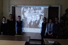 "Җиңүгә адымлап!" акциясе кысалары нигезендә мәктәптә Бөек Җиңү бәйрәменә әзерлек эшләре башланды. План нигезендә сыйныф җитәкчеләре класс сәгатьләре үткәрәләр.В преддверии Дня Победы, в школе проходят классные часы, посвященные Великой Отечественной войне.