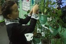 Атналык кысаларында бүген укучылар сыйныфлардагы гөлләрне сөрттеләр.