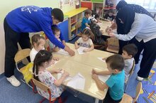 Юнармейцы учат воспитанников детского сада делать армейский сухой душ 14.02.2025