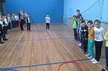 Учащиеся 4 класса на едином уроке по физической культуре.