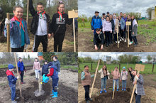Сегодня учащиеся нашей школы посадили яблони в школьном саду.