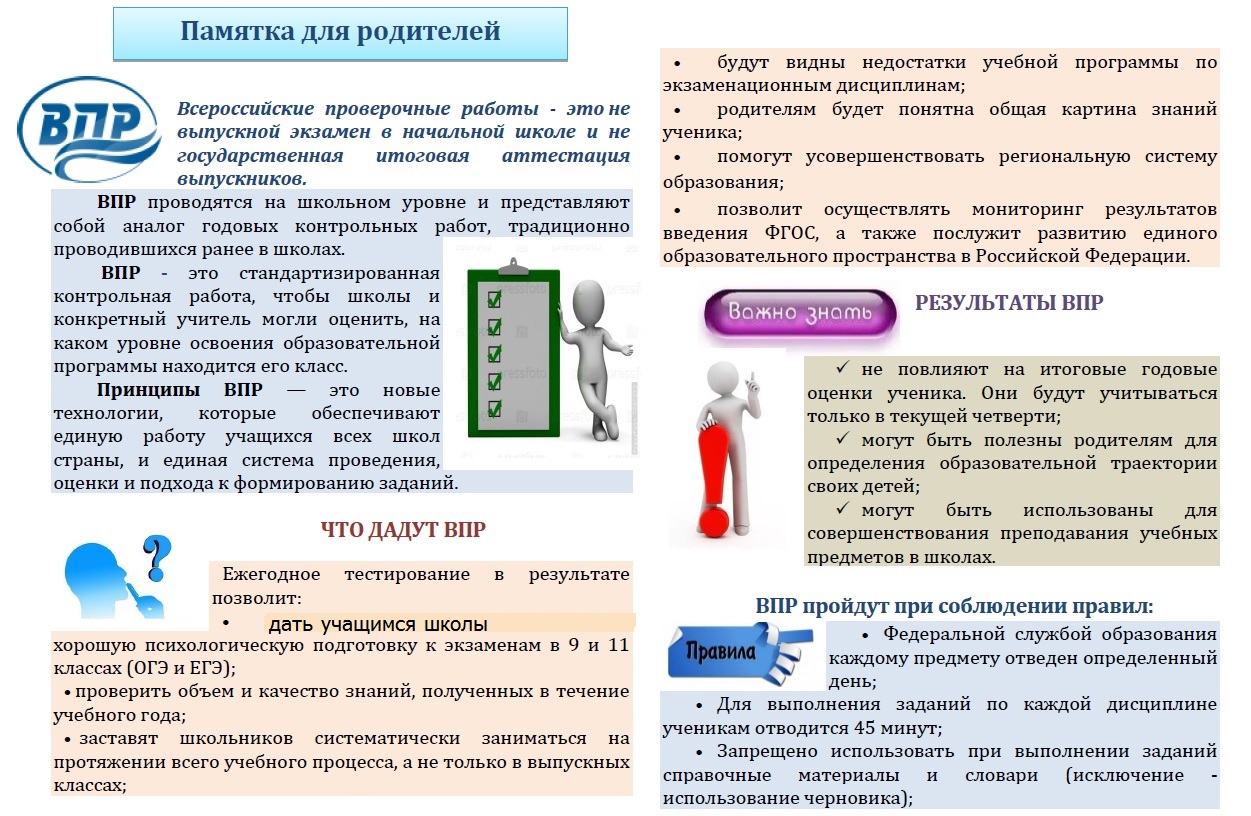 ПАМЯТКА ДЛЯ РОДИТЕЛЕЙ ВСЕРОССИЙСКИЕ ПРОВЕРОЧНЫЕ РАБОТЫ