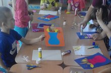 Уртанчылар катнаш төркеме балалары режим вакытында кисеп ябыштыру белән шөгылләнделәр.