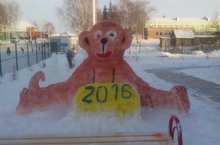 Главная снежная постройка- символ года 2016 года ( остальные фоты снежных построек смотрите медиатеку)
