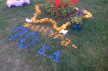 Тәрбиячеләрнең Җиңүнең 70 еллыгына багышлап ясаган чәчәк түтәле