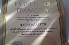 Яңа ел алдыннан биналарның алгы якларын һәм әйләнә-тирәсен бәйрәмгә иң матур итеп бизәүчегә игълан ителгән район конкурсында балалар бакчалары арасында III урын яуладык. Сыннар ясауда катнашкан барлык хезмәткәрләргә дә рәхмәтебезне белдерәбез. Эшләрендә уңышлар, тазалык-саулык телибез.