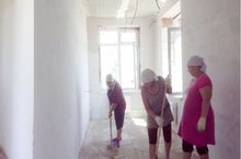 Балалар бакчасы эшчеләре төзүчеләргә яңа бинаны җыештыруда булыша.