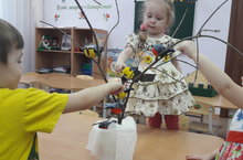 Менә алтын көз килеп җитте. Яфраклар саргая башлады. Урамдагы агачлар төрле төсләр белән бизәлә: кызыл, сары, яшел, кызгылт сары төсләргә буяла. Бу яфраклар аз гына җил исеп китсә - коелып бетәләр һәм бөтен җир төрле төстәге яфраклар белән түшәлә.Аяк атлаган саен шыгыр-шыгыр коры яфраклар тавышы ишетелә. Шул яфракларга күмеләсе, уйныйсы килә. Урманга барсаң - көзнең матурлыгын шунда күрәсең инде.Шундый матур табигатьнең бер матурлыгын онытмас өчен без дә бакчабызның уртанчылар катнаш төркеме белән көзге агач ясадык. Балаларда көзге табигатьнең матурлыгына соклана белү, күзәтүчәнлек һәм кызыксынучанлык сыйфатлары тәрбияләү, үзләштерелгән сүзлек запасына таянып агач, яфрак, үләннәрне, һава торышын тасвирлап сөйли белү күнекмәләрен үстердек.Вот наступила золотая осень. Листья пожелтели. Деревья на улице окрашиваются в разные цвета: красный, желтый, зеленый, оранжевый. Эти листья выпадают при малейшем порыве ветра, и вся земля покрывается разноцветными листьями. При каждом шаге слышен шорох сухих листьев. Хочется играть этими листьями. Если идешь в лес-там видно красоту осени.Чтобы не забыть такую красоту природы, мы со средней группой сделали осеннее дерево. Воспитывали у детей умение любоваться красотой осенней природы, наблюдательность и любознательность, умение на основе усвоенного словарного запаса описывать деревья, листья, травы, погоду. -