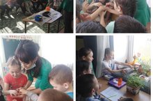 Кечкенәләр катнаш төркеме үсемлекләр һәм үсентеләр, "тәрәз төбе бакчасы" дигән темага әңгәмәләр үткәреп, "Бабай борчак утырткан", "Яшелчәләр" бармак уеныннарын өйрәнеп, "Баллы кишер", "Яшелчәләр" дигән үстерешле мультязмалар карап акцияне дәвам итәләр.