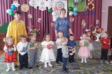 В первой младшей группе прошёл очень весёлый праздник - посвященный мамам. На праздник в гости пришли сказочные герои - Маша, медьведь и солнышко. Дети вместе с ними играли, пели, танцевали.