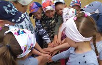 Уртанчылар һәм зурлар катнаш төркемендә, 12 июнь Россия көненә багышлаган тематик эшчәнлек булып узды. Балалар “Без Рәсәйдә яшибез” дигән видеофильм карап белемнәрен ныгыттылар. Россиянең башкаласы Мәскәү, аның истәлекле урыннарын күрделәр, анда яшәүче милләтләрне искә төшерделәр. Ахырдан краскалар белән Россия флагын ясадылар.