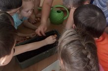 Воспитанники старшей разновозрастной группы под руководством воспитателя посадили лук. Воспитатель рассказал и показал всю последовательность посадки лука, напомнил, что лук нужно обязательно есть, так как в нем содержится очень много витамина, и минералов которые полезны для организма. Ребята ознакомились свойствами лука. После ознакомления воспитанники посадили луковицы в ящик с землёй и они будут наблюдать за ростом зелёного лука, поливать его и срезать выросшие зелёные перья. Теперь на их «грядке» вырастет вкусный, витаминный, зелёный друг!