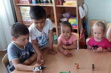 Дети очень охотно повторяли названия животных на татарском и на русском языке. Играли игры : “Покажи”, «Кто как кричить?», «Сколько у.нас гостей?», а так же пальчиковую игру “Встреча гостей”.