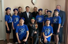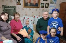 Юнармейцы поздравляют ветерана ВОВ. Яшьармиячеләр Бөек Ватан сугышы ветеранын котлыйлар. 18.02.2025