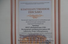 Казанский национальный исследовательский технологический университет выражает благодарность директору МБОУ "Ямашурминская СОШ Высокогорского муниципального района РТ" Сафиуллину Ленару Габдулкаюмовичу за активное участие и высокую военно-спортивную подготовку и мастерство команды, проявленные в соревнованиях по военно-прикладным видам спорта "День защитника Отечества. Надеемся на дальнейшее сотрудничество. желаем новых творческих успехов и свершений. плодотворной и инициативной работы!