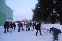 Учащиеся школы очистили школьную территорию от снега.