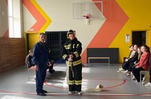 и на природе; выработки у учащихся первичных навыков защищать свою жизнь и здоровье, оказывать само- и взаимопомощь, а также повышения престижа профессий пожарного и спасателя. Урок состоял из теоретического и практического частей. -