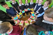Укучылар классташларын, әниләрен дәү әниләрен бәйрәм белән котлау өчен открыткалар ясадылар.