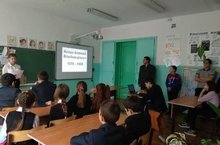 Командир отряда Форпост Сальцинова Мария прочитала учащимся МБОУ "Большемеминская СОШ" лекцию о Герое России Козине Алексее Владимировиче.