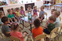 Во второй младшей группе прошла беседа об окружающем мире на тему «Кто живет в реке?» Подводный мир напрямую не доступен для изучения детьми. А там столько всего интересного: животные, рыбы, растения, водоросли, ракушки. Всё это интересует ребят. Но как же попасть туда? Современные средства и методы обучения позволяют это сделать, что способствует погружению детей в интересную для них тему, делает их активными участниками образовательного процесса. Воспитанники рассматривали дидактические карточки с морскими и речными жителями, играли в подвижную игру «Невод», а также нам посчастливилось вживую познакомиться с настоящим речным раком, это позволило ребятам подробно рассмотреть его внешне, изучить части тела и как он ведёт себя в воде.