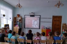 Сегодня в старшей группе МБДОУ «Верхнеуслонский детский сад «Берёзка» в рамках акции посвященной поэту Муса Джалиля прошло занятие по ознакомлению детей с жизнью и творчеством. Воспитатель Людмила Тимиряева подготовила для детей презентацию и рассказала о годах жизни поэта.