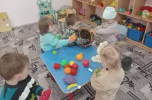 Сегодня к ребяткам младшей группы в гости приходили зайчик и ёжик. Ребята были очень рады увидеть лесных гостей . Малыши сначало познакомились со зверятами , затем с большим интересом изучали содержимое корзины, которую принесли гости.В корзине оказались фрукты и овощи. Ребятки их доставали и угощали зайчика и ёжика. Малыши своими действиями показали ,какие они добрые и заботливые. Так в игровой форме у детей вырабатываются чувства доброты и любви , желание помочь другим.