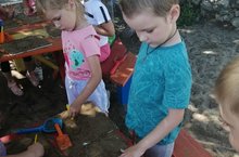 Сегодня ребята подготовительной группы МБДОУ «Верхнеуслонский детский сад «Берёзка» рисовали на песке различные изображения: солнце, животных, геометрические фигуры, сердечки и многое другое. Для рисования использовали доски для лепки, стеки. Создание песочных композиций, в отличие от рисунка, не требует каких – либо особых умений. Да и если что не так получилось, можно провести ладонью по песку и начать рисовать заново.