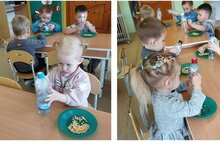 Сегодня к ребяткам младшей группы в гости приходили зайчик и ёжик. Ребята были очень рады увидеть лесных гостей . Малыши сначало познакомились со зверятами , затем с большим интересом изучали содержимое корзины, которую принесли гости.В корзине оказались фрукты и овощи. Ребятки их доставали и угощали зайчика и ёжика. Малыши своими действиями показали ,какие они добрые и заботливые. Так в игровой форме у детей вырабатываются чувства доброты и любви , желание помочь другим.