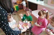 Дошколята из группы «Солнечные зайчики» сегодня познакомились с историей этого праздника. Воспитатель рассказала ребятам, что яйца на Руси испокон веков считались символом жизни. Пасха - большой семейный праздник, к которому нужно готовиться заранее. Чтобы не нарушать эту традицию, воспитатель Елена Сакина предложили детям проявить творчество в таком интересном и любимом многими занятии, как роспись пасхальных яиц. Поделки получились уникальными. Мастера росписи пасхальных яиц назвали бы их малеванки – это красивые яйца, украшенные любыми придуманными узорами, нанесенными красками.