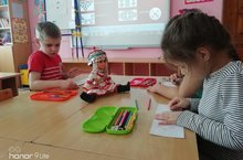Сегодня в группе "Солнечные лучики" прошло увлекательное занятие по знакомству с Чувашией, культурой чувашского народа, чувашским орнаментом. С ребятами были проведены тематические беседы, где дошкольники вспоминали о выдающихся земляках - летчике - космонавте А. Т. Николаеве, командире Красной армии В. И. Чапаеве. Также ребята познакомились со смысловым значением чувашских узоров: "солнце", "дом", "деревья", "животные", с изделиями и узорами вышивки чувашского народа. Далее дети превратились в художников и украсили белые листочки чувашскими узорами. В конце занятия прошло музыкальное развлечение "День рождения куклы" (Пуканен уралн кун), на котором дети спели для куклы "Каравай". Занятие было проведено в целях воспитания подрастающего поколения в духе национальных ценностей и традиций.