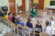 Детям была показана презентация " Лес и его обитатели" и проведена беседа о бережном отношении к лесу. Потом ребята вышли на улицу и там познакомились с оборудованием для тушения лесных пожаров . Дети с большим интересом слушали рассказ лесничего и с удовольствием примеряли на себя оборудование . После интересной беседы ребята вместе с сотрудниками посадили сосны на участке детского сада. Встреча была очень интересной, поучительной и познавательной. -