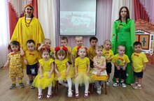 В младшей группе прошел весенний праздник " В гостях у солнышка", где дети - цыплятки вместе с мамой Наседкой встретились с красавицей Весной и отправились будить тёплое весеннеее Солнышко. По дороге они пели песни, танцевали, играли, встретили много новых друзей: Ежика, Птичку, Бабочку, которые им помогали будить солнышко. Праздник получился весёлым и ярким. -