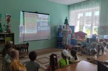 В МБДОУ" Верхнеуслонский детский сад " Березка " прошло праздничное мероприятие, посвящённое дню России. Музыкальный руководитель Ландыш Хафизова подготовила для воспитанников всех групп видеоролик о истории возникновения этого праздника. Дети стоя слушали гимн, исполняли песни и танцевальные композиции про Родину.