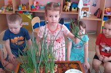 Огород на подоконнике в группе является очень интересным занятием, когда хочется не только отведать свежие дары природы, но и посмотреть на цвета зелени. И нет ничего приятнее, когда первая зелень поспевает прямо у ребят на глазах. Каждый год воспитатель Екатерина Зеленцова с ребятами во второй младшей группе «Колобок» выращиваем на подоконнике лук. Перед посадкой мы провели беседу о пользе лука, о его лечебных свойствах, умение правильно высаживать лук на зелень. У детей сформировались знания о том, в каких условиях можно выращивать лук, о трудолюбии и бережном отношении.