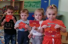 20 февраля во второй младшей группе «Колобок» прошел спортивный праздник «Вместе с папой!», посвященный Дню защитника Отечества. Дети пели песни, танцевали и с выражением читали стихотворения для своих любимых пап. Праздник проходил в форме игры и состоял из различных эстафет. Участники поделились на две команды «Победители», «Счастливые». Дети и взрослые проявили большую активность, подарили друг другу хорошее настроение, радость общения и улыбки, показали какие они ловкие, выносливые, смелые. А в подарок дорогим папам дети вручили открытку «Самолет», изготовленную своими руками.