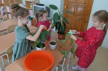 Дошкольники детского сада Берёзка совместно с воспитателем ухаживают за комнатными растениями. Комнатные растения в детском саду- это не только предмет интерьера, но и средство очищения воздуха, средство знакомства и общения детей с природой. Дети нашей группы с удовольствием ухаживают, поливают растения в группе и в "зелёных уголках" детского сада. Уход за комнатными растениями способствует развитию детей, формирует у них чувство ответственности и самостоятельности. Такие элементарные трудовые поручения воспитывают интерес к комнатным растениям и желание ухаживать за ними.