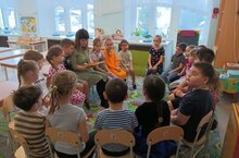 В средней группе " Божьи коровки' МБДОУ "Верхнеуслонский детский сад "Берёзка" прошел тематический день, посвященный международному дню зебры. Дети уточнили и закрепили предоставления об этом необычном для нашей местности животном, отгадывали загадки, играли в подвижные игры. Узнали много интересного о полосатых животных: чем питаются, как спят, где обитают. Ещё дети вспомнили о полосатой разметки пешеходного перехода, так ранее называемой " зебры", как средство безопасности на проезжей части для пешеходов. Сделали коллективную работу зебра на " зебре".