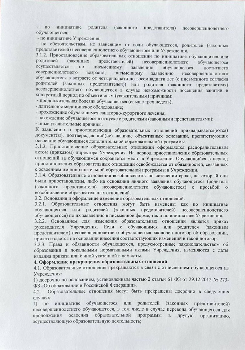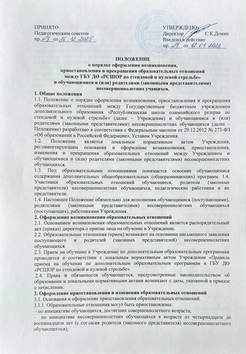 Положение о порядке оформления возникновения, приостановления и прекращения образовательных отношений