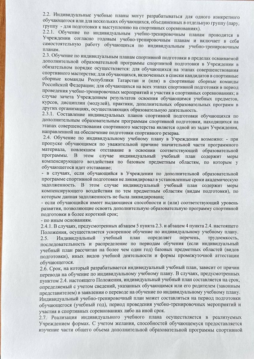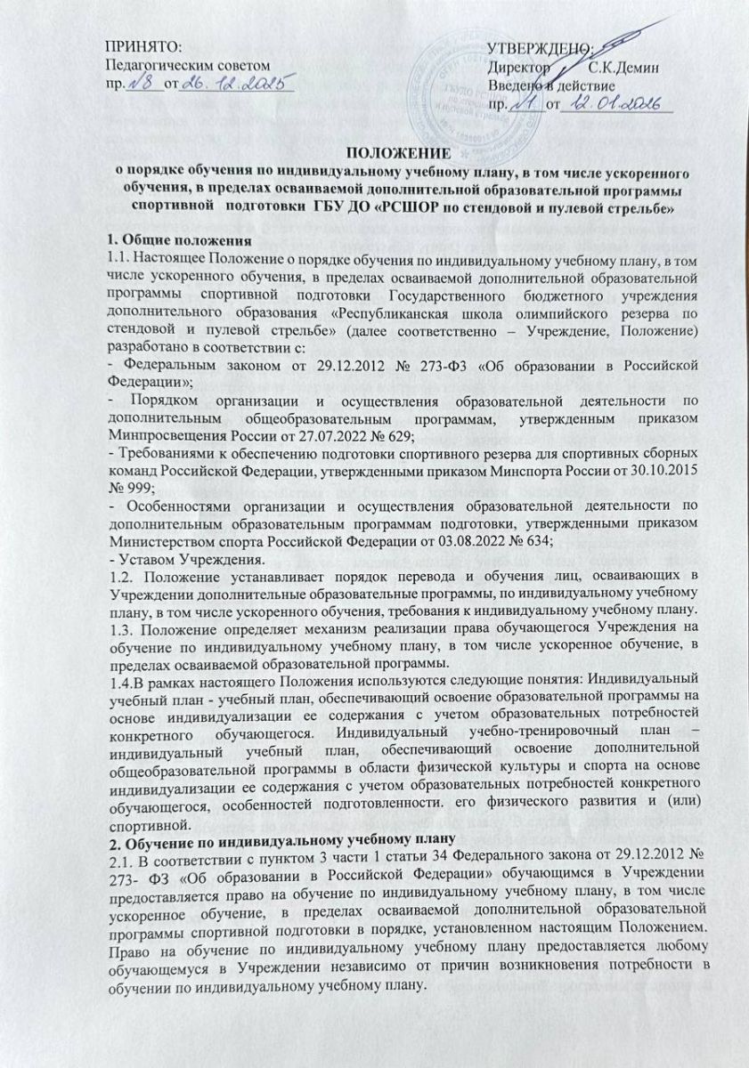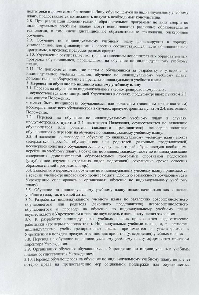Положение о порядке обучения по индивидуальному учебному плану, в том числе ускоренного обучения, в пределах осваиваемой дополнительной образовательной программы спортивной подготовки