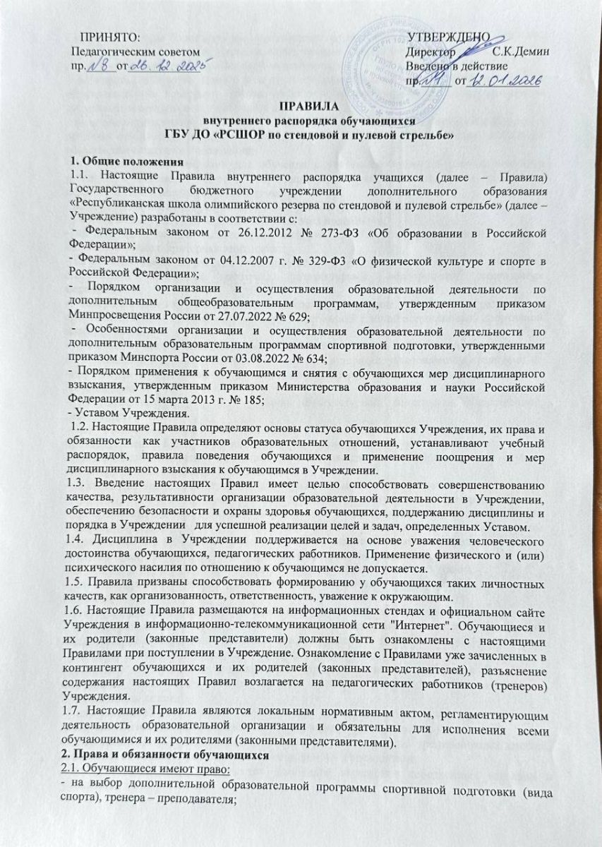 Правила внутреннего распорядка обучающихся
