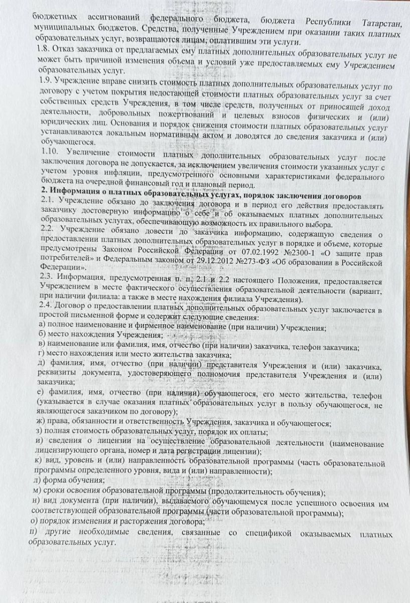 Положение о платных дополнительных образовательных услугах