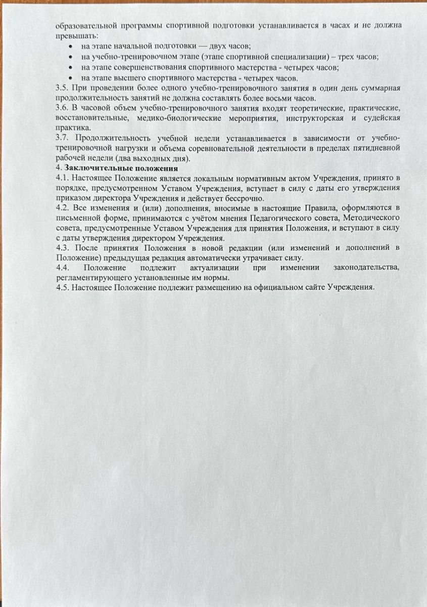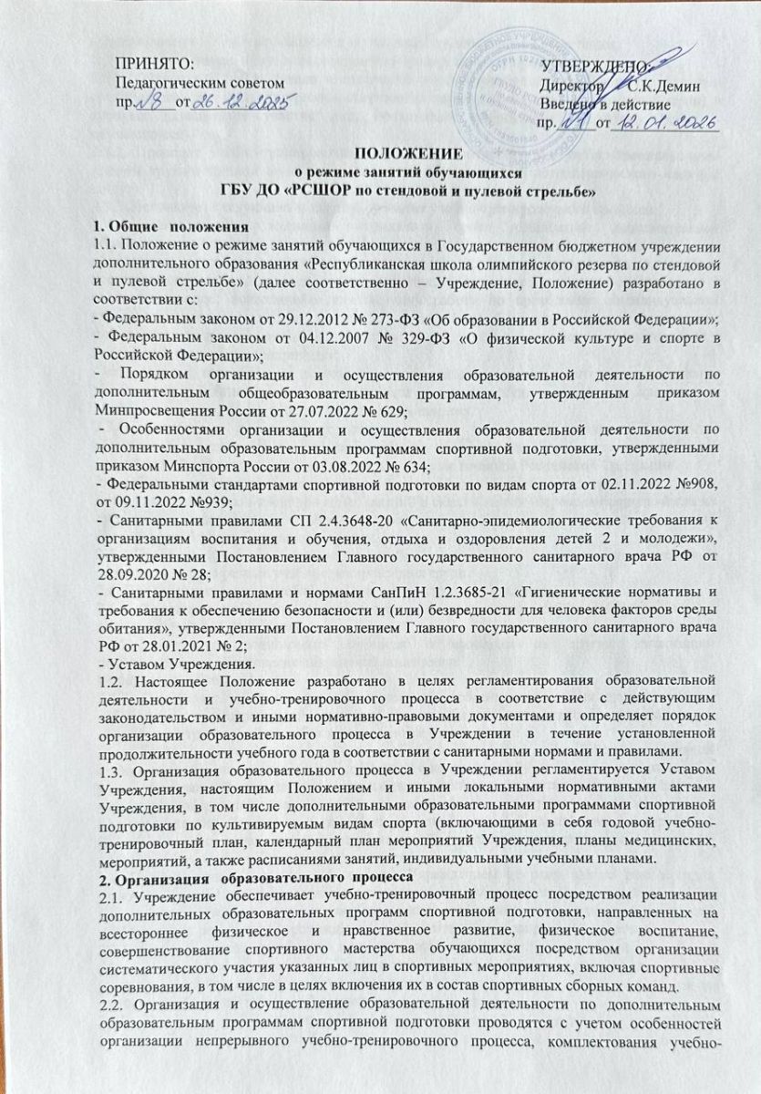 Положение о режиме занятий