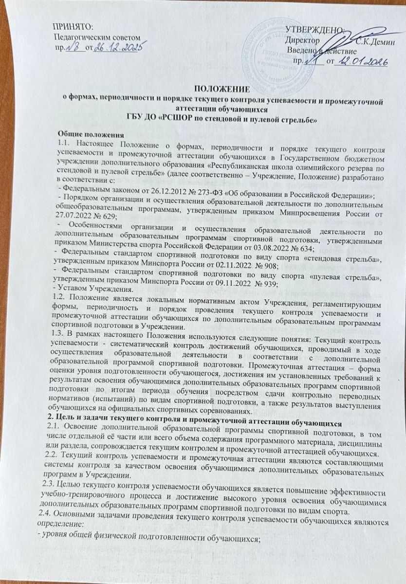 Положение о формах, переодичности и порядке контроля успеваемости и промежуточной аттестации обучающих