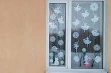 На окнах чудеса:Снежинки и шары,Обезьянки, ёлочкиПтички и коты. -