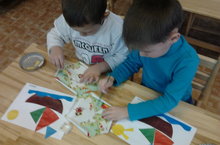 Сегодня воспитанники старшей группы МБДОУ «Кураловский детский сад» познакомились с новым видом аппликации - торцеванием.