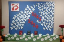 9 нчы Май-һәр Рәссәй кешесе өчен иң кадерле һәм хөрмәтле бәйрәм. 1945нче елның Җиңү языннан күпме генә еллар узмасын, без һәрвакыт рәхмәт белән алгы сызыкта сугышкан, тылда батырларча эшләгән, оккупациядә дошманга каршы торган кешеләрне искә алачакбыз. Җиңү көнендә без яу кырларыннан әйләнеп кайтырга язмаган кешеләрне тирән кайгы белән искә алабыз. Солдатларның исемнәре Рәссәй тарихына мәңгегә язылган һәм рәхмәтле буын хәтерендә мәңге калачак. Бөек Ватан сугышында җиңүнең 75 еллыгына багышланган чаралар кысаларында безнең мәктәптә укучылар, ата-аналар һәм педагоглар белән берлектә «Хәтерлибез, горурланабыз» дип исемләнгән Хәтер стенасы төзелде. -