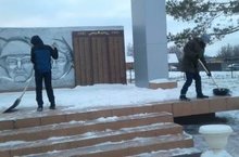 Акция по очистке памятников от снега «Снежный десант».Һәйкәлләрне кардан чистарту буенча «Кар десанты»акциясе. 03.12.2019
