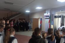 Под гимн РФ и РТ флаги поднимали ученицы 6 класса Сергейчева Милана и Кукушкина Анна. Очередная учебная неделя была открыта.
